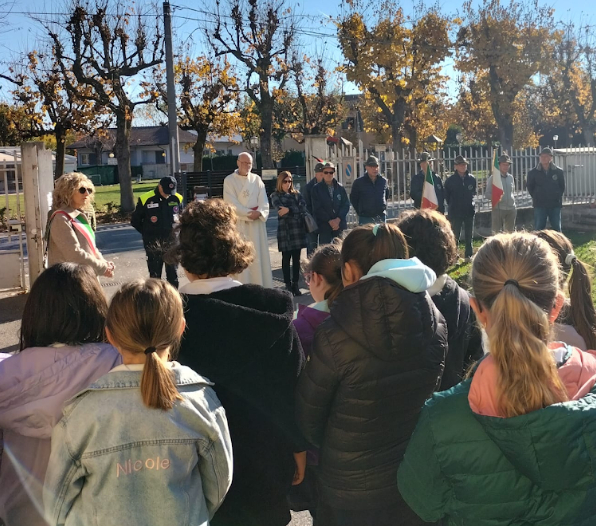 Martedì 4 novembre, presso il cortile della scuola primaria di Sant’Albano Stura, gli alunni della classe quinta hanno accolto gli alunni delle classi terze della scuola media per celebrare la Giornata dell’Unità nazionale e delle Forze armate. A dialogare con i ragazzi vi erano il Vicesindaco Enrica Scotto e il diacono Corrado Calcagno che, alla presenza del Gruppo Alpini Ceriolo e degli operatori della Polizia Locale, hanno sottolineato il valore della pace, della solidarietà e dell’impegno civico. In seguito gli alunni della primaria hanno presentato un cartellone con lo slogan “L'Italia è libera, Viva la pace” e letto l'articolo 11 della Costituzione. Successivamente, è toccato agli alunni della secondaria, che hanno letto coralmente un brano di Emilio Lussu e alcune poesie di Giuseppe Ungaretti, riguardanti gli orrori della guerra e l’ideale di fratellanza tra gli uomini. La cerimonia si è conclusa con l’intonazione dell’inno d’Italia da parte dei presenti e l’Alzabandiera. Si è trattato quindi di una commemorazione molto importante, in cui i ragazzi hanno potuto riflettere su temi centrali dell’educazione civica e rinnovare la memoria dei caduti per la Patria.